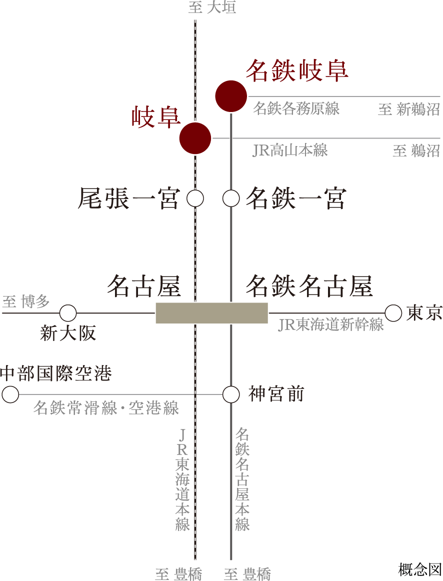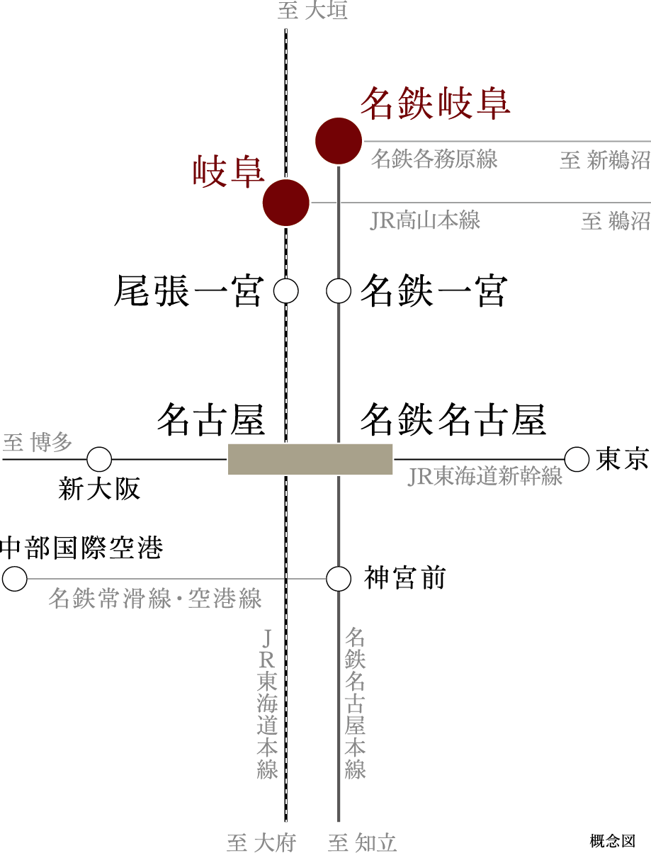 名鉄「名鉄岐阜」駅、JR「岐阜」駅のどちらからも