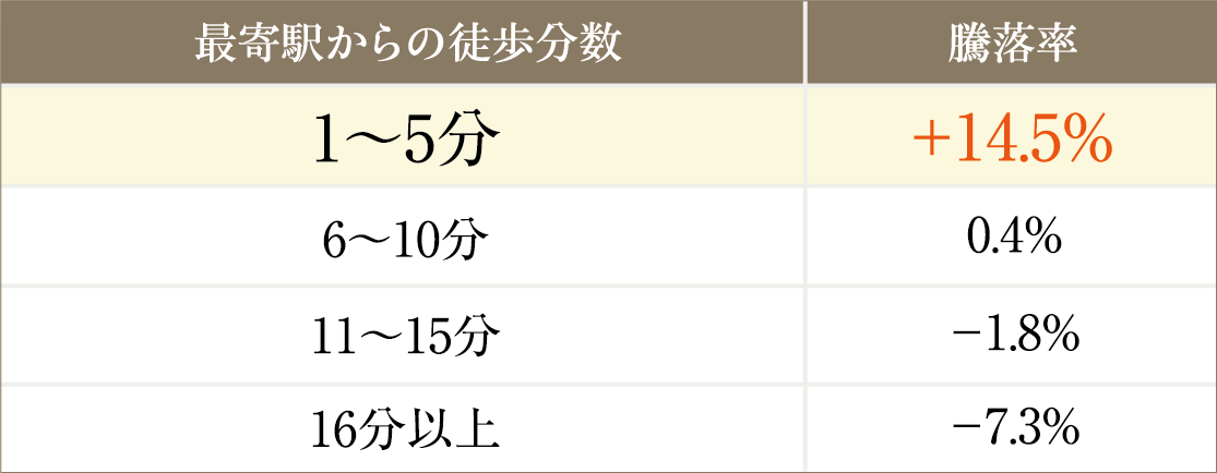 [最寄り駅までの徒歩分数別のリセールバリュー]